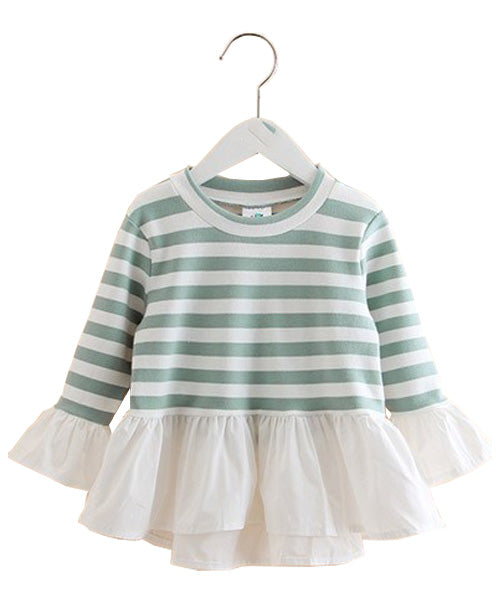 Bluza eleganta cu volane Geraldine Manecute lungi Volanase din bumbac aplicate la maneci si la terminatie, care confera o nota de eleganta tunici. Imprimeu in dungi Material calduros Bumbac moale, foarte confortabila, lejera Ideala pentru gradinita, scoala sau serbari, aniversariCuloare: Alb cu roz oliveMaterial: Sintetic
