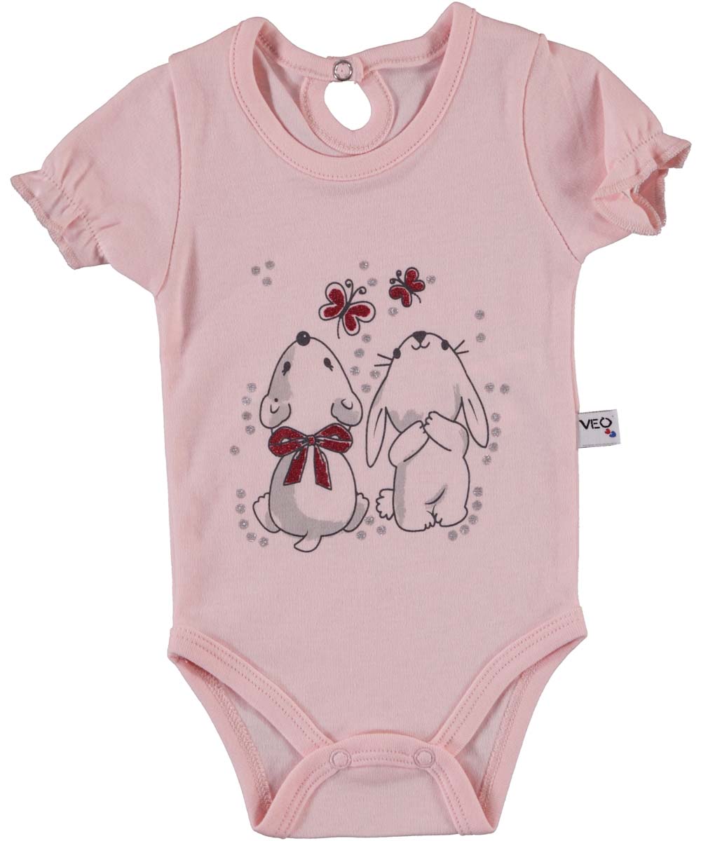 Body cu maneca scurta din bumbac, Friends Manecute scurte bufante. Elastic moale (nu strange) Inchidere cu o capsa la spate Decupaj pe rotund la gat Imprimeu Friends cu un Iepuras si un Ursulet Inchidere cu capse intre picioare. Poate fi purtat ca atare sau poate fi combinat cu o fustita sau cu o rochita de vara fara maneci Foarte elegant.Culoare: SomonMaterial: Bumbac 100%