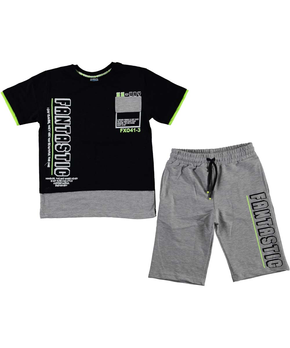 Descriere: Set tricou si pantaloni scurti din bumbac Rise Up Tricou cu manca scurta Imprimeu Fantastic Pantaloni scurti pana la genunchi gri. Elastic in talie. Snur in talie pentru ajustare Ideal pentru sport, activitati in aer liber, plimbari.Culoare: NegruMaterial: Bumbac 100%