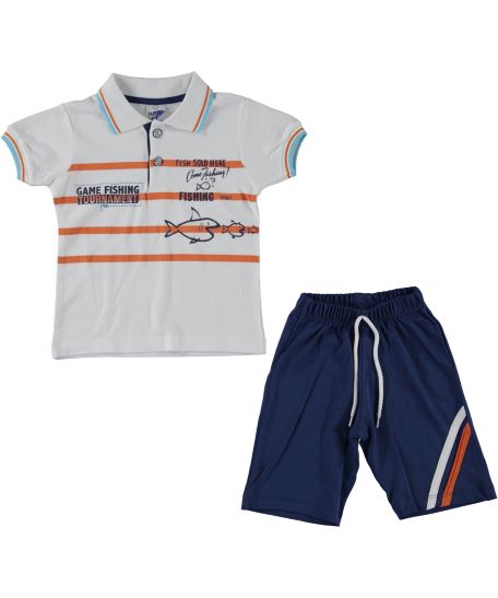 Set tricou si pantaloni scurti din bumbac. Tricou Polo cu manca scurta Pantaloni scurti cu elastic moale...