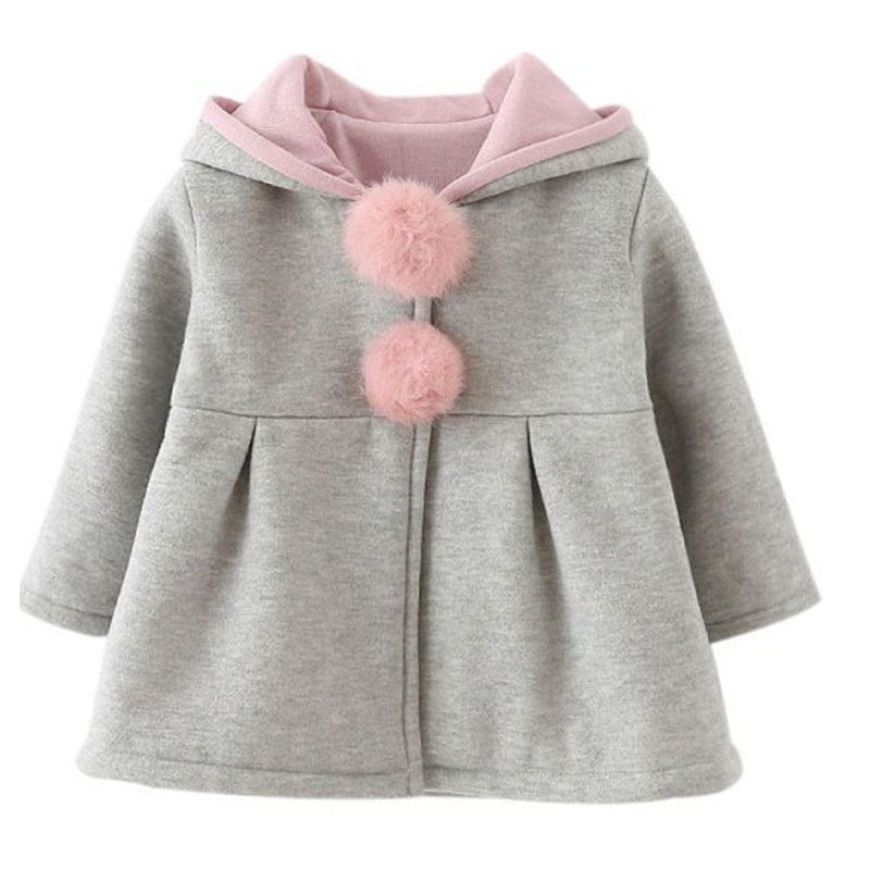 Pardesiu casual pentru perioadele racoroase de primavara/toamna. Gluga prevazuta cu 2 urechi lungi de iepuras da un aspect trendy Inchidere cu 2 nasturi care au aplicate doi bulgasii pufiosi Maneca lunga. Captuseala din bumbac. Foarte elegant. Potrivit pentru evenimente speciale.Culoare: Gri cu rozMaterial: Exterior: Material Sintetic 100% Captuseala: Bumbac 100 %
