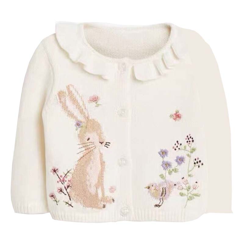 Pulover elegant bumbac pentru fete Little Maven Aplicatii cusute Bunny - Iepuras Broderie Rascroiala pe rotund la gat cu volanas aplicat Inchidere cu nasturei in fata Foarte elegant Poate fi asortat cu orice articol de imbracaminte Potrivit pentru orice ocazieCuloare: AlbMaterial: Bumbac 100%