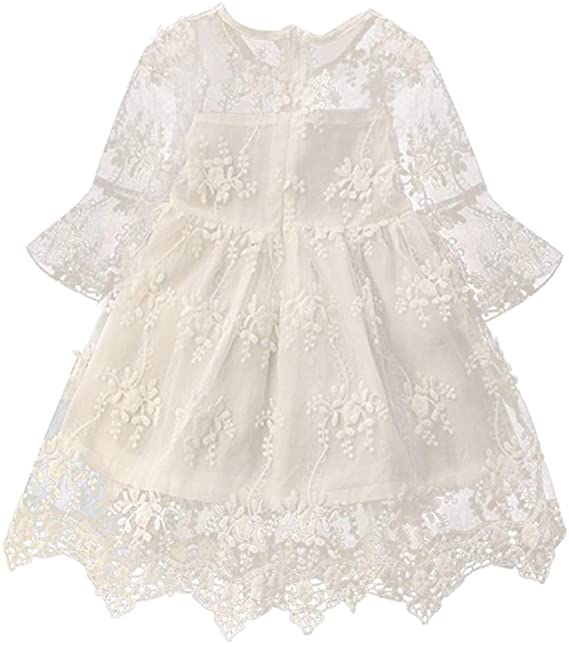 Rochita eleganta din dantela si voal brodat, Charlotte, bumbac, alb