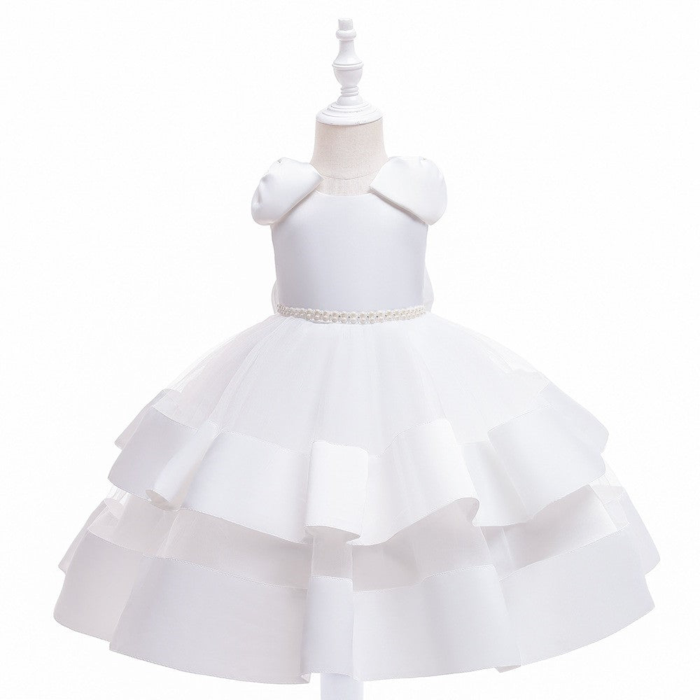 Rochita eleganta printesa Bella, voal si satin, alb