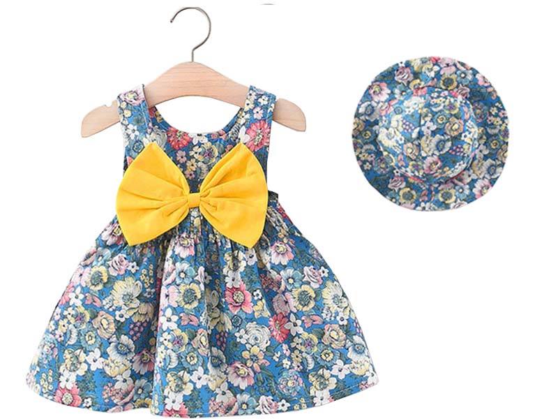 Rochita de vara din material subtire de bumbac. Bretelute Funda mare aplicata la spate Inchidere nasturei la spate. Lungime: deasupra genunchiului. Datorita materialului subtire si de calitate rochita este racoroasa si se preteaza pentru zilele calde de vara. Se livreaza impreuna cu palariuta din imagineCuloare: AlbastruMaterial: Bumbac 100%
