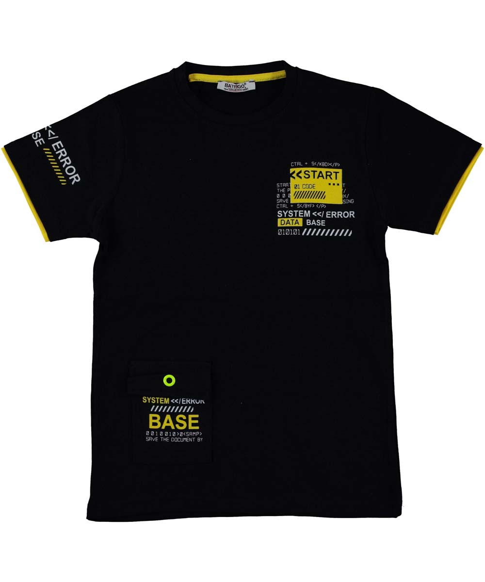 Tricou cu maneca scurta pentru baieti. Imprimeu text. System Error Maneca scurta Rascroiala pe rotund la gat...