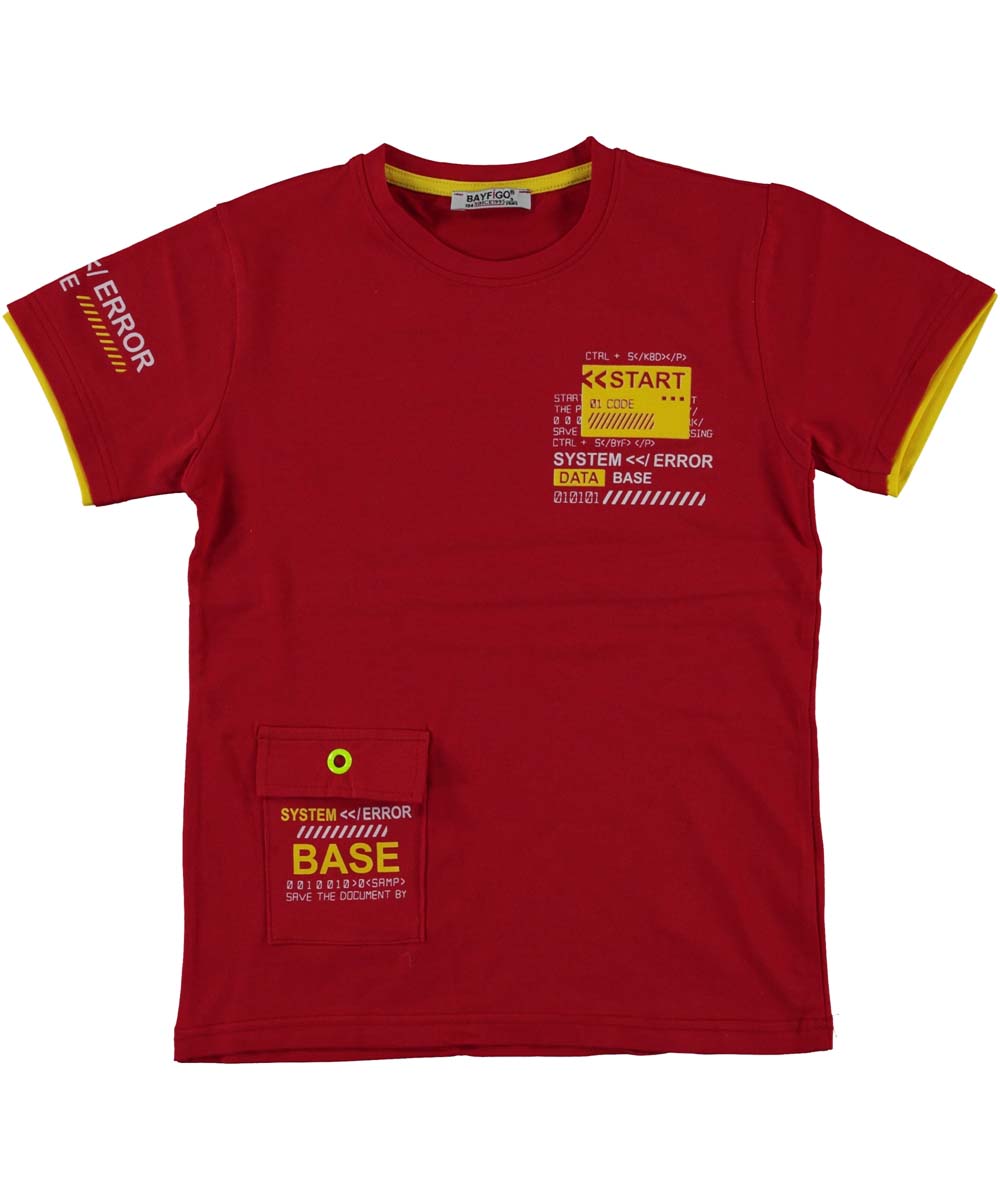 Tricou cu maneca scurta pentru baieti. Imprimeu text. System Error Maneca scurta Rascroialape rotund la gat Buzunar...