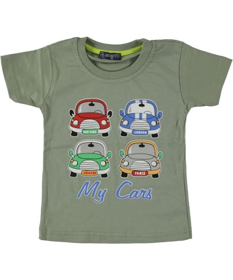 Tricou cu maneca scurta pentru baieti. Imprimeu cu masinute TrendyCuloare: Verde oliveMaterial: Bumbac 100%
