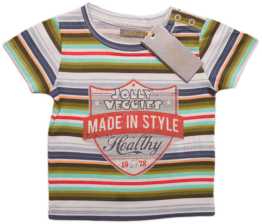 Tricou cu maneca scurta pentru baieti. Inchiere cu doua capse pe umarul stang Imprimeu cu dungi TrendyCuloare:...