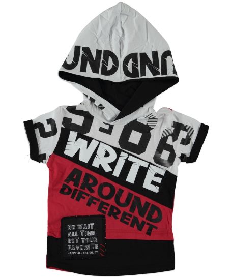 Tricou cu maneca scurta si gluga pentru baieti. Imprimeu text. Maneca scurta In pas cu moda Material...