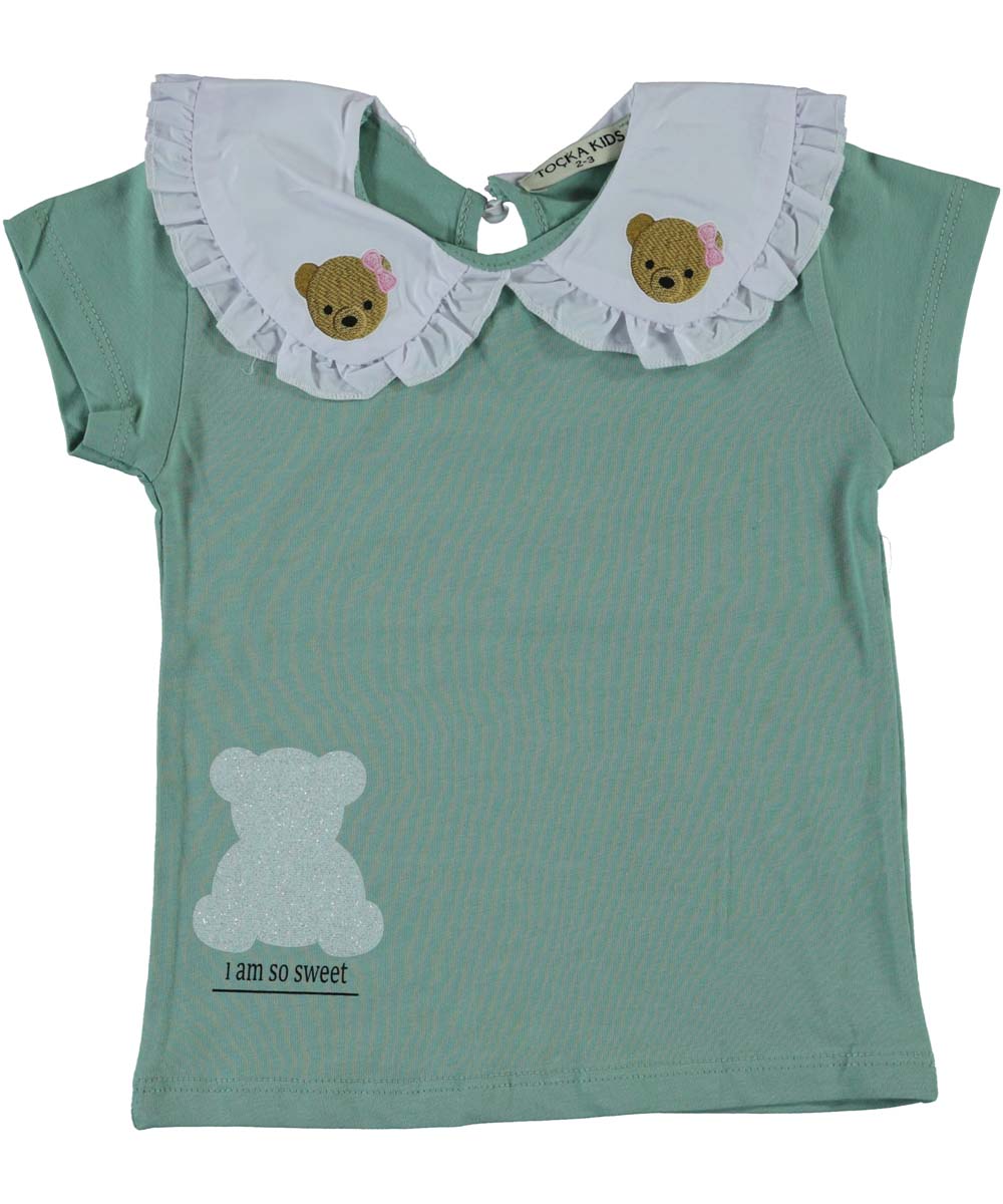 Tricou cu guleras fete, Teddy, bumbac, verde