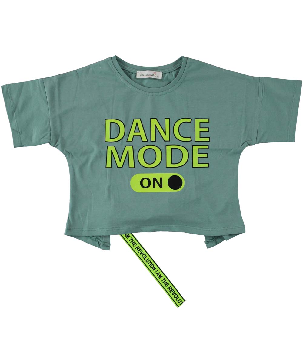 Tricou cu maneca scurta. Decupaj pe rotund la gat Talie scurta Largime ajustabila la spate Imprimeu Dance...