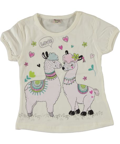 Tricou cu maneca scurta. Decupaj pe rotund la gat Imprimeu Lama Love. Strasuri delicate aplicate pe imprimeuCuloare:...