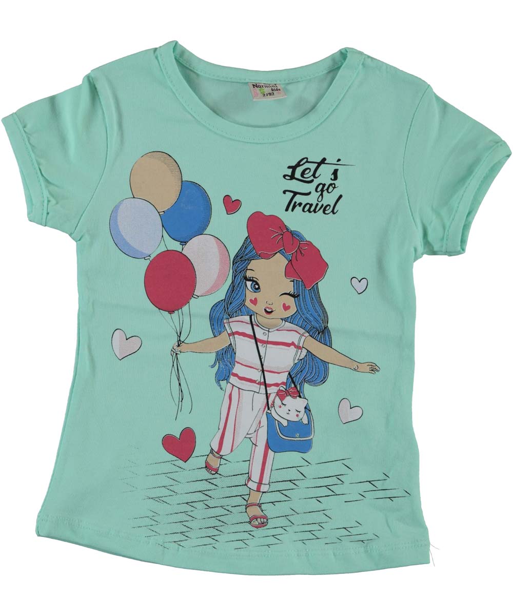 Tricou cu maneca scurta. Imprimeu Fetita cu baloane. Elemente sclipicoase.Culoare: Verde turcoiseMaterial: Bumbac 100%
