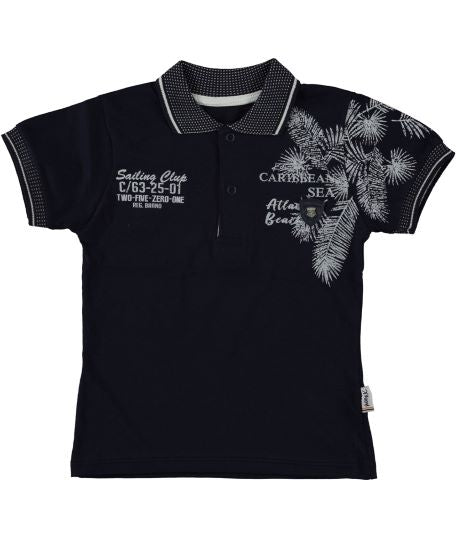 Tricou polo cu maneca scurta pentru baieti. Inchidere cu capse. Maneca scurta Aplicatie decorativa pe partea stanga...